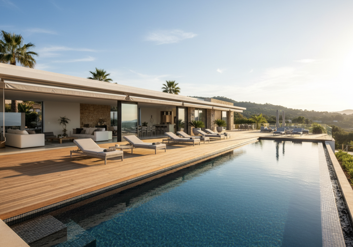 Superbe villa de plain-pied offrant de vastes espaces lumineux, une grande terrasse en bois et une piscine élégante. Un bien contemporain idéal pour profiter d'un cadre de vie confortable et ensoleillé.